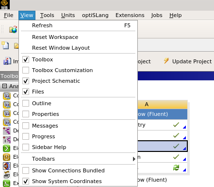 ANSYS Workbenchを起動し、Toolboxビューワー(左ペイン)のField Flow (Fluent) をダブルクリックします。 すると、Project SchematicビューワーにField Flow (Fluent) というラベルの解析システム(テーブル)が表示されます。