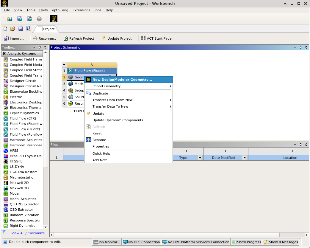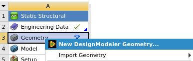 Geometryセルを右クリックし、New DesignModelerをクリックすると、DesignModelerが起動します。