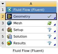 流体解析システムのGeometryセルのステータスが「?」からレ点に更新されていることを確認します。