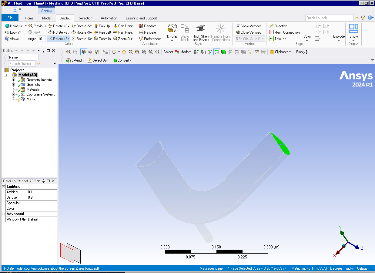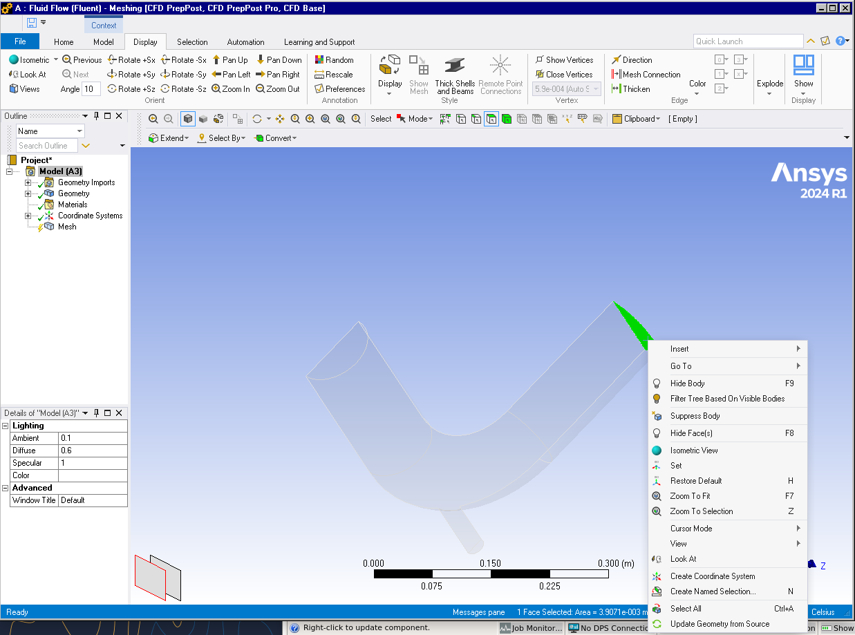 Named Selectionを作成します。 対称性を考慮したモデルの場合はNamed Selectionを設定する必要があります。モデル構造の広い入口部分を選択します。すると選択した面が緑色に表示されます。