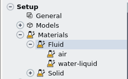 Treeビューの Setup > Materials > Fluid > water-liquid が追加されていることを確認します。