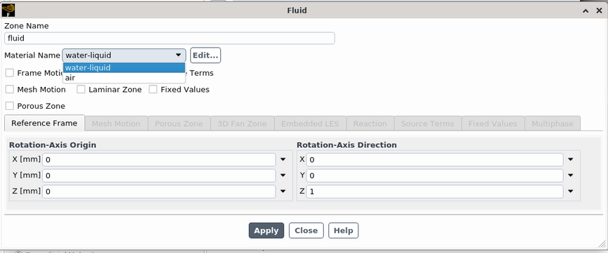 Material Nameをairからwater-liquidに変更し、[Apply]をクリックします。