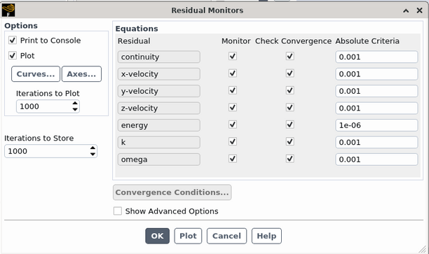 Residuals Monitorsダイアログが表示されます。 Plotにチェックが入っていることを確認します。その他はデフォルトのままOKをクリックします。