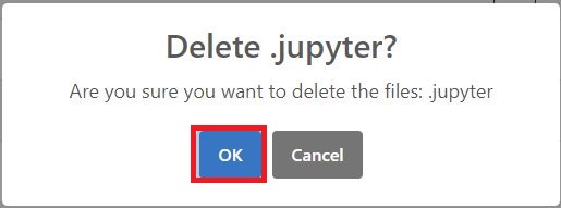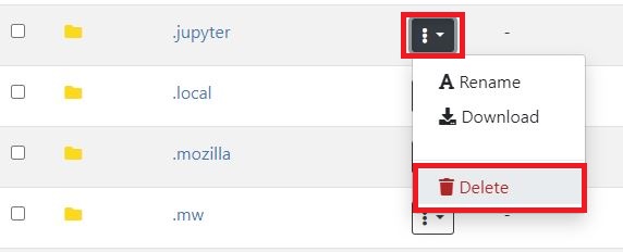 .jupyter ディレクトリ横の ⋮ をクリックし、Delete をクリックします。( 先頭が . で始まるディレクトリです)