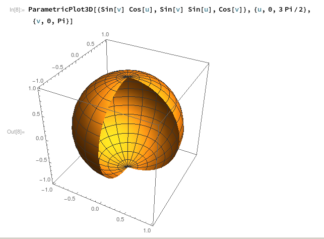 {u, 0, 3Pi/2}, {v, 0, Pi}]