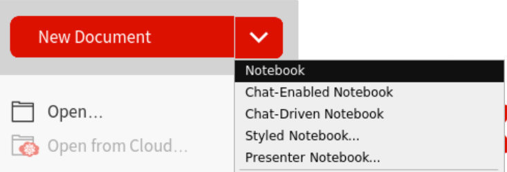 画面左部の「New Document >Notebook」をクリックすることで、ノートブックが起動します。