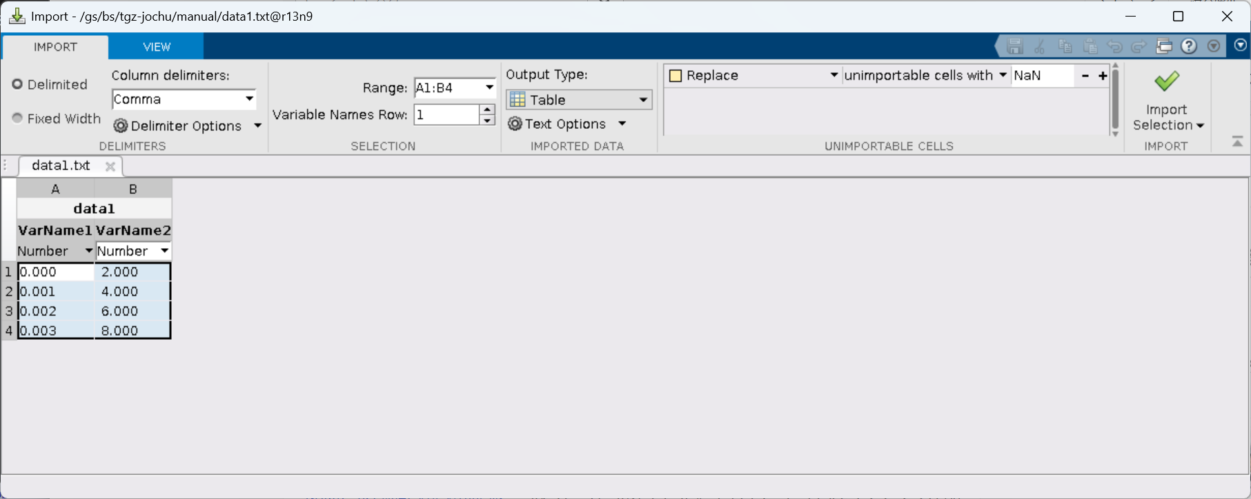 読み込みコマンドを使うことで、前節で述べたフォーマットのファイルを全て読み込むことができます。 MATLABのデータインポート関数は大きく分けて2種類あり、それぞれのデータフォーマットに応じて使い分けます。