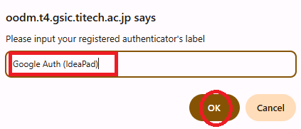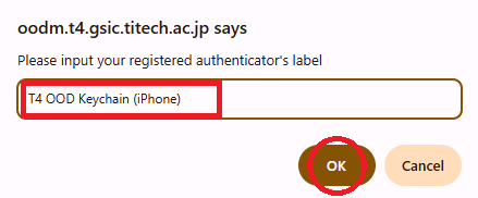 When a user name is specified at login on Access Management Server, a list of registered security devices is displayed. This means that if the user name is known, the list of security devices registered by that user before authentication can be referenced by a third party (a limitation due to the current Keycloak specification). Without the linkage of registered security devices, the actual authentication will not succeed, but other information may be analogized from the number, type, and name of devices in use. When registering security devices, please be careful to avoid using label names that can identify personal information or affiliations. In particular, do not use label names that include user IDs, passwords, PIN codes, or PIN numbers (even those for systems other than TSUBAME are prohibited).