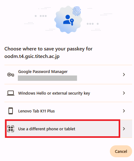 In the list of security devices to register, select “Use a smartphone, tablet, or security key”.