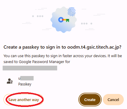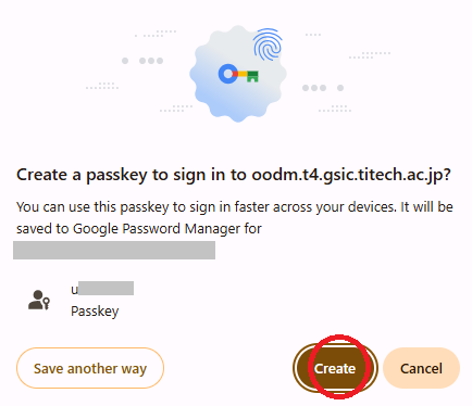 And "Create passkey continune" is displayed, press "continue".