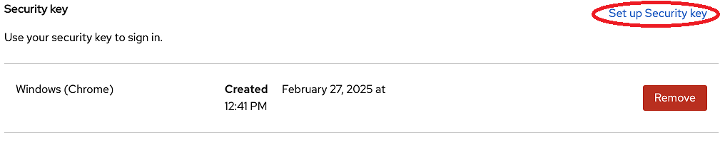 Press the button to the right of Security key and click “Set up Secuirty key”.