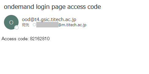 An e-mail with an access code will be sent to your e-mail address registered on the TSUBAME Portal.