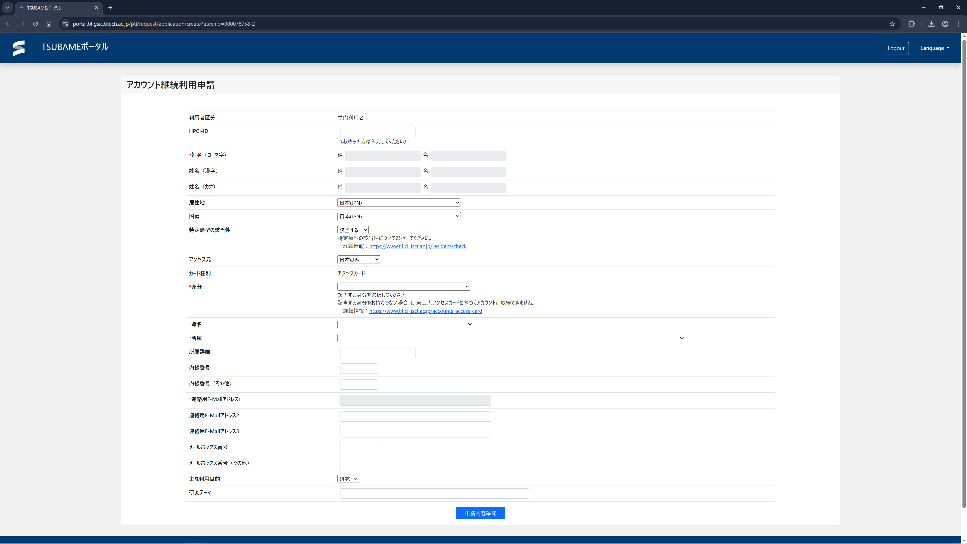 医歯学系に所属し、理工学系ICカードに紐づかないTSUBAMEアカウントをお持ちの方の継続利用申請方法につきましては、該当する方に個別にメールでご案内いたします。