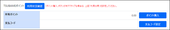「TSUBAMEグループ詳細」画面にある「ポイント購入」ボタンを押すと、「TSUBAMEポイント購入」画面に遷移します。