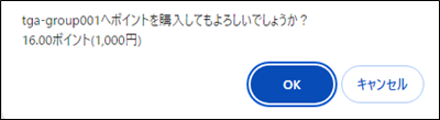 確認のダイアログ上の「OK」ボタンを押すと、指定した数量のポイントが購入され、グループへポイントが加算されます。