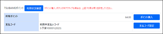 TSUBAMEポイントは、計算サービスやグループディスクなどの有料サービスを利用する際に、対価として消費されるものです。 ポイントは、事前に指定した支払コードより購入いただくか、利用制度担当部署より割り当てを受けてください。