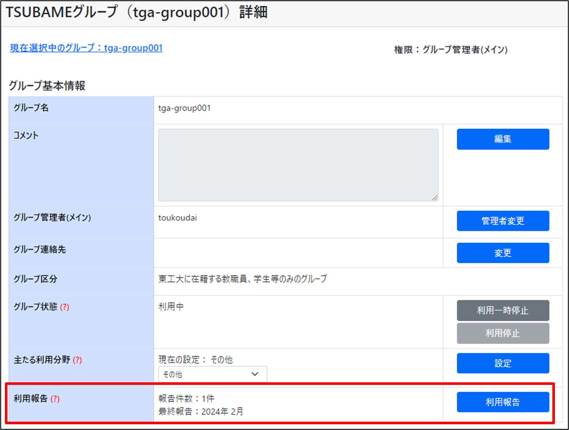 TSUBAMEでの研究成果等はグループ毎に報告する必要があります。