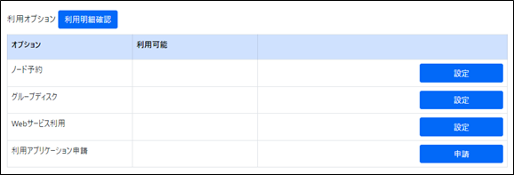 グループ詳細画面の利用オプションにあるグループディスクの設定ボタンより、グループディスクの利用状況を確認することができます。