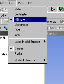 この例ではミリ単位のモデルを構築するため、[Units] - [Milimeter] を選択します。