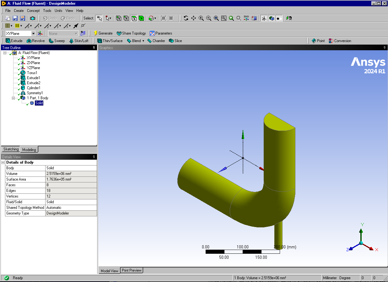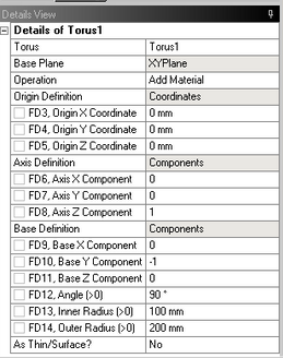 トーラス(主管の曲線部分)が作成されます。Tree OutlineにはTorus1という項目が追加されます。