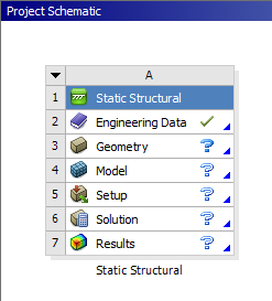 Toolboxのリストから使用したいソフトウェアをダブルクリックすると、Project Schematicに解析システム(テーブル)が起動します。 下記はStatic Stracturalの解析システムを起動した画面です。