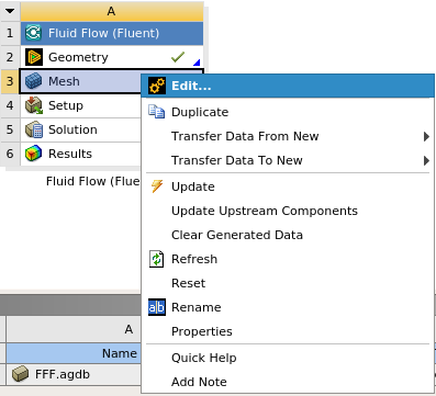 流体解析システムのMeshセルをダブルクリックするか、右クリックし [Edit] を選択します。