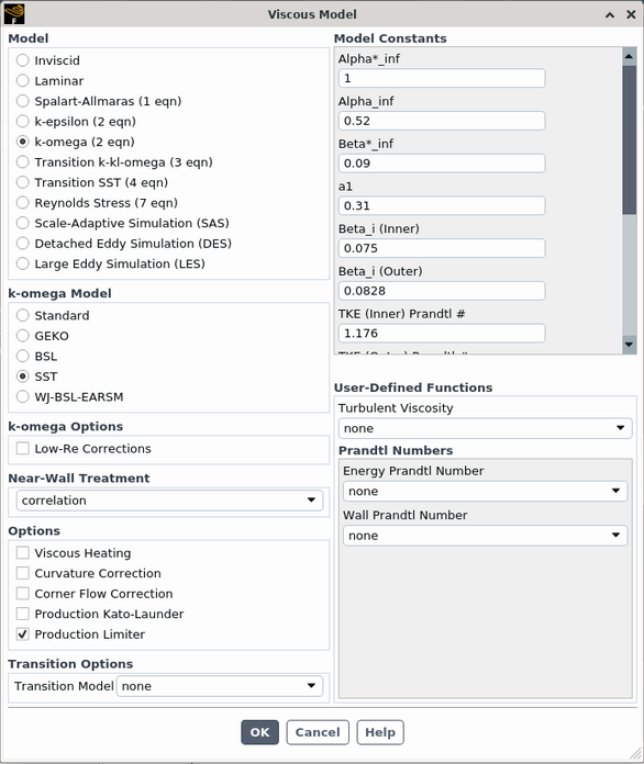k-omega (2 eqn) を選択し、[OK]をクリックします。