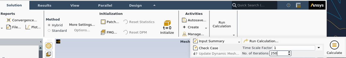 [Solution]-[Run Calclation]をクリックし、No. of iterationsに250を設定します。 [Calculate]をクリックして計算を実行します。