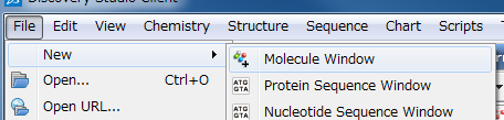 Discovery Studioを起動するPCがインターネットに接続できる場合、RCSB PDB やNCBIにより無償で公開されているタンパク質や核酸の構造を読み込むことができます。