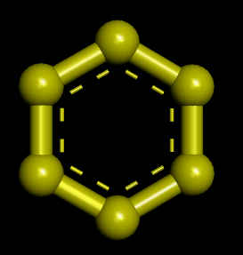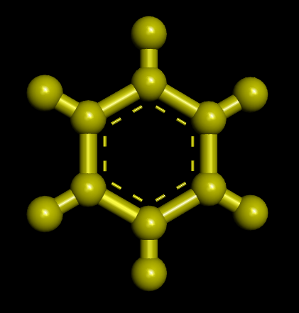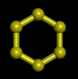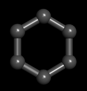 この状態でMolecule Window上で一度左クリックします。 炭素6原子からなる環構造が作成されます。
