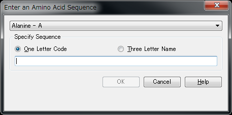 プルダウンリストから残基を選択するか、テキストボックスに直接入力することでまとまった配列を一括で構築することができます。