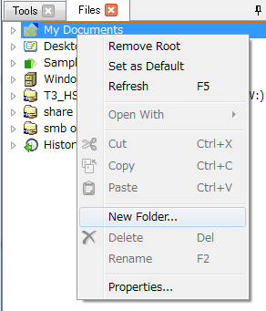 例えば、My Documentsフォルダーに新規フォルダー「Sample」を作成する場合、 Files ExplorerのMy Documentsを選択して、右クリックします。