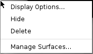 ワークスペース内の表面を右クリックすると、このメニューが表示されます。 表示オプションは、表面の名前を変更するためのダイアログを開きます。 ワークスペースに現在含まれているすべての表面が表示されているかどうかを示すダイアログが開きます。