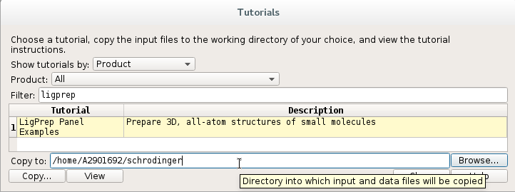 ligprepのデータのコピーを行うため、Copy to:にコピー先のディレクトリを直接記入するか、Browse…から指定し、「Copy…」ボタンをクリックします。