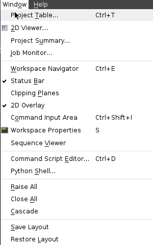 Window>ProjectTableを選択してProjectTableを呼び出します。