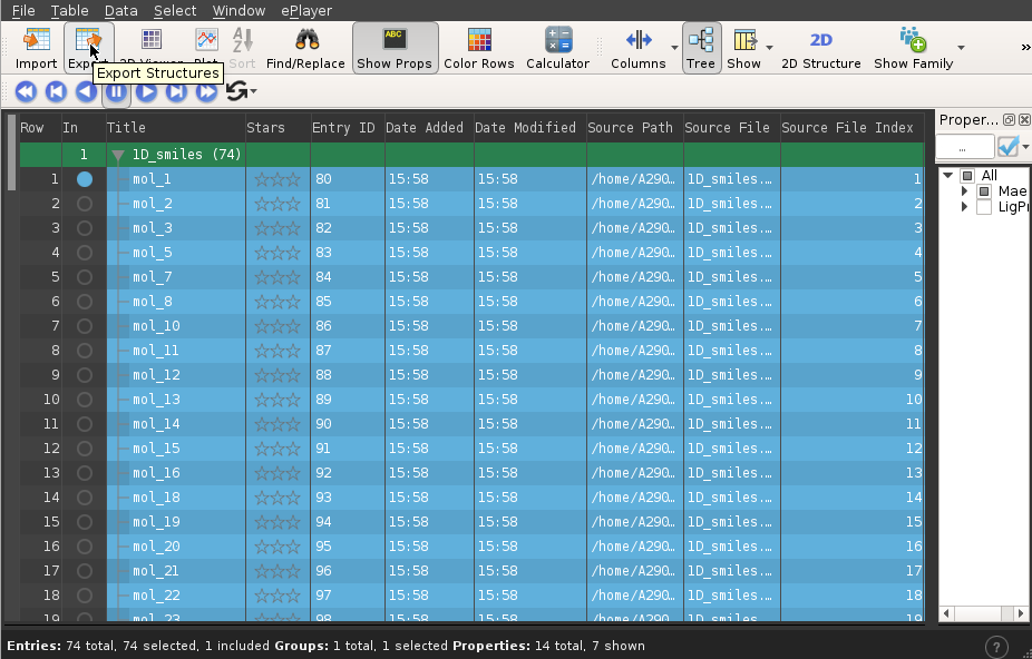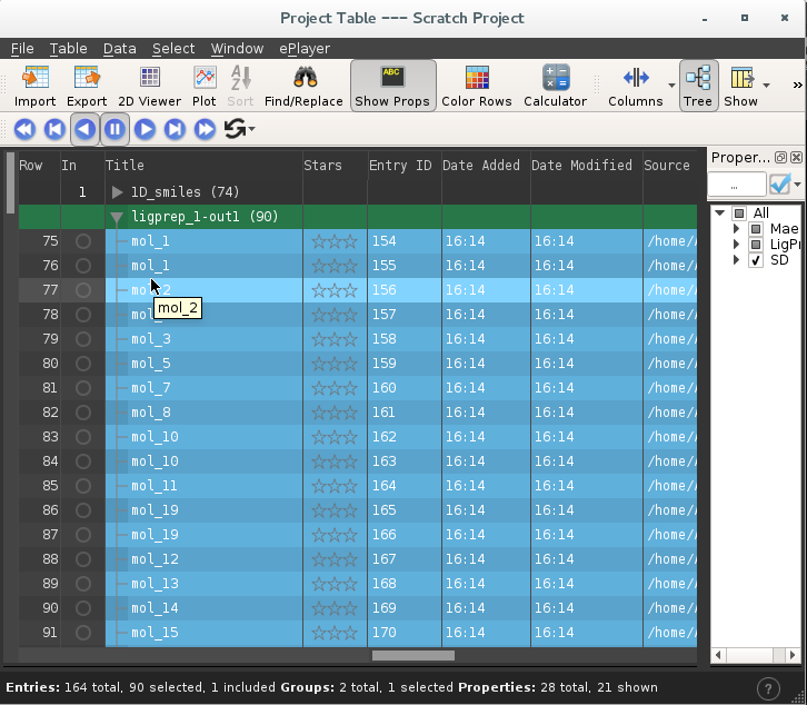 例ではligprep_1-out1というSDFファイル中に90個の化合物が存在します。