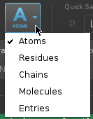 ピッキングレベルメニューは、ワークスペースで選択する内容を決定します。 デフォルトでは、原子選択です。