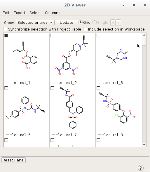 74化合物存在することを確認し、2D viewerアイコンをクリックして各構造についても確認します。