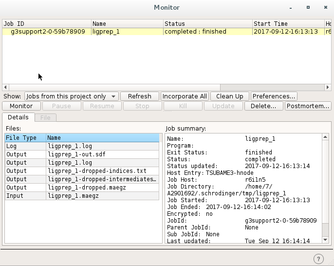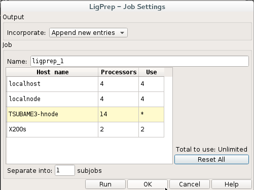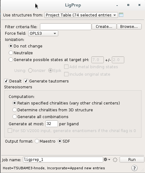LigprepジョブダイアログもしくはジョブセッティングダイアログのRunボタンをクリックすると計算サーバに投入されます。