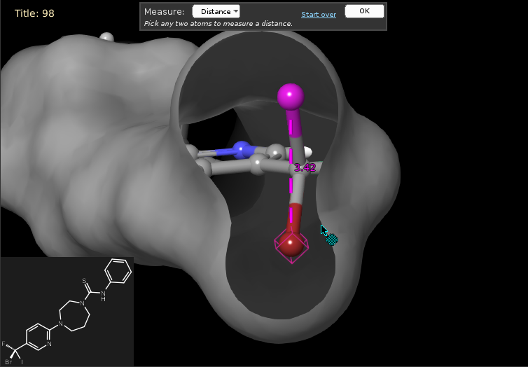 結合をクリックして結合内の2つの原子を選択するか、リボンをクリックして関連する残基のアルファ炭素を選択することもできます。