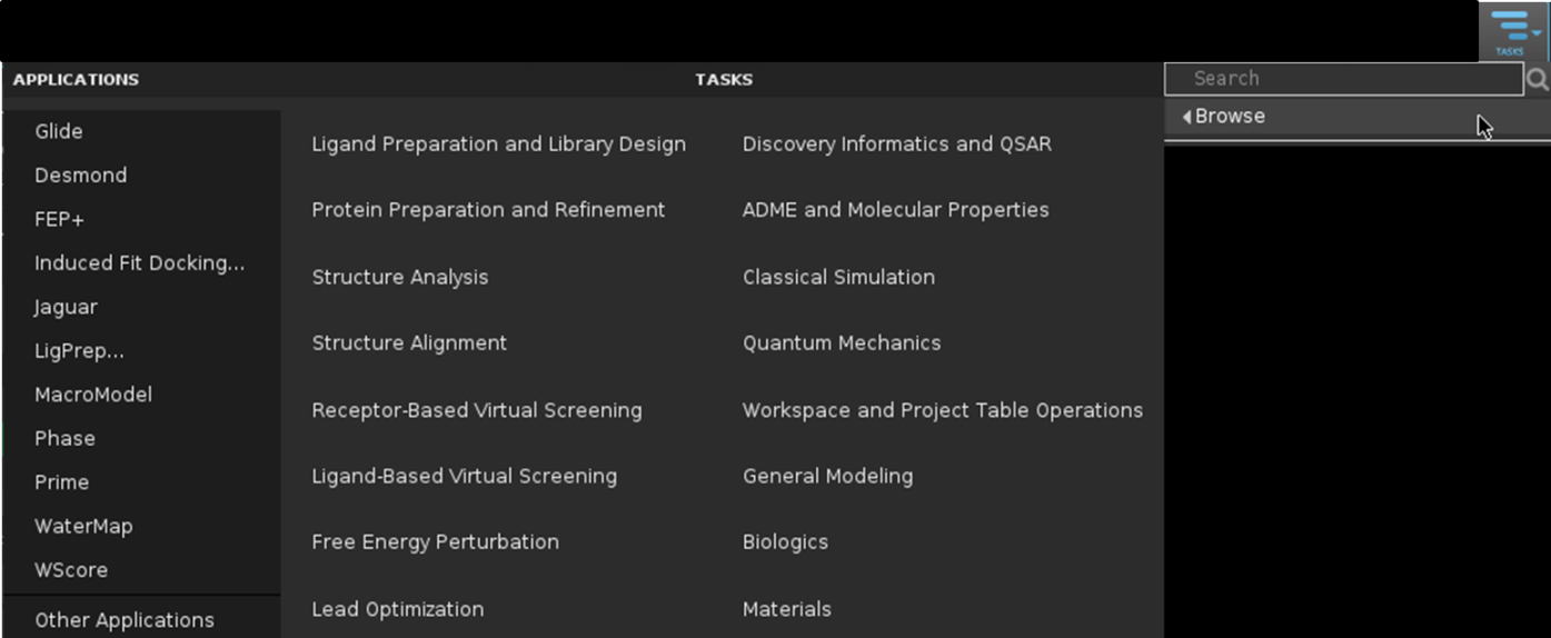 計算化学の専門家だけでなく、現場のメディシナルケミストにも使いやすいように工夫されており、3次元QSARを行う「Phase」や化合物ライブラリーを扱う「CombiGlide」の一部機能の統合され、簡易解析であればMaestroのみで実行できます。