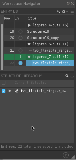 ワークスペースはリガンドなどの低分子構造やタンパク質の立体構造などといった中~大規模分子構造を可視化する領域です。