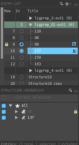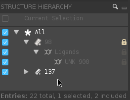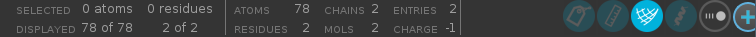 より高いレベルでは、単一の原子をクリックすると、関連するすべてのオブジェクト(関連する残基、鎖、分子、またはエントリ)が選択されます。