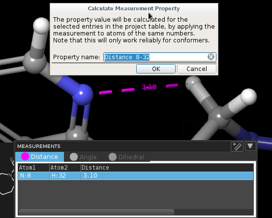 - Calculate Property - 測定内の原子を使用して、選択した各エントリの測定プロパティを作成します。これは、原子番号を使用するので、主にコンホーマーに有用です。